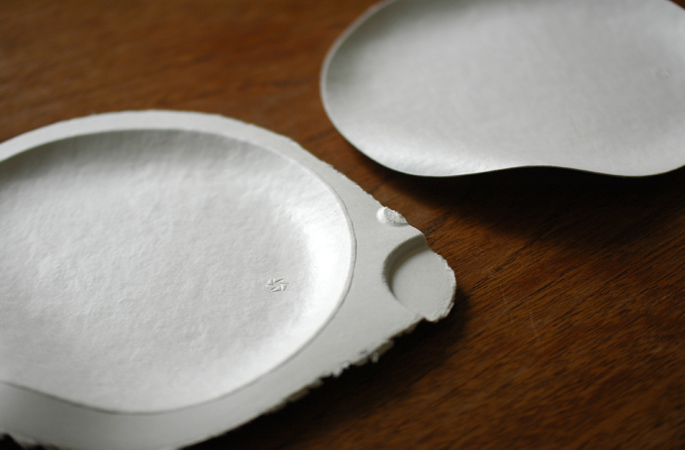 特製的模具利用熱與壓力塑形,並去除多餘的水分濕氣。
