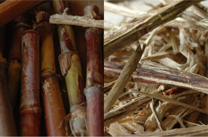 將原料 竹子及甘蔗渣 分解成纖維成分,並與水混和後置入打漿機。